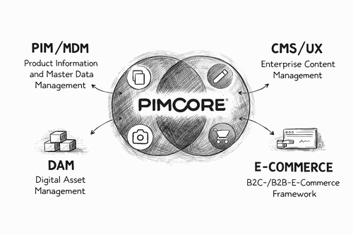 Pimcore bildet diese Prozesse nicht als „Add-ons“ ab, sondern als Systemprinzip. Die Plattform ersetzt oft mehrere Tools gleichzeitig (PIM/DAM/CMS/Workflow), schafft eine „Single Source of Truth“ und reduziert Fehler, Abstimmungsschleifen und manuelle Arbeit.