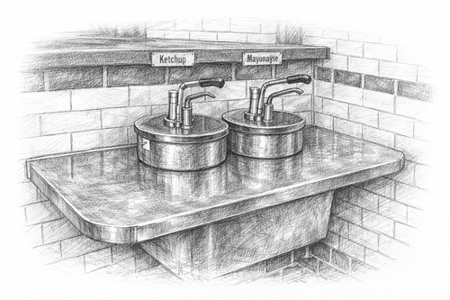 Doch weil die Kette wirklich gut im Verkaufen ist und Ketchup und Mayo kostenlos, reichlich und frei dosierbar bereitstehen, entsteht unbewusst der Impuls, Pommes „doch mitzunehmen“. Nicht wegen Hunger, sondern wegen der verdammten Psychologie.