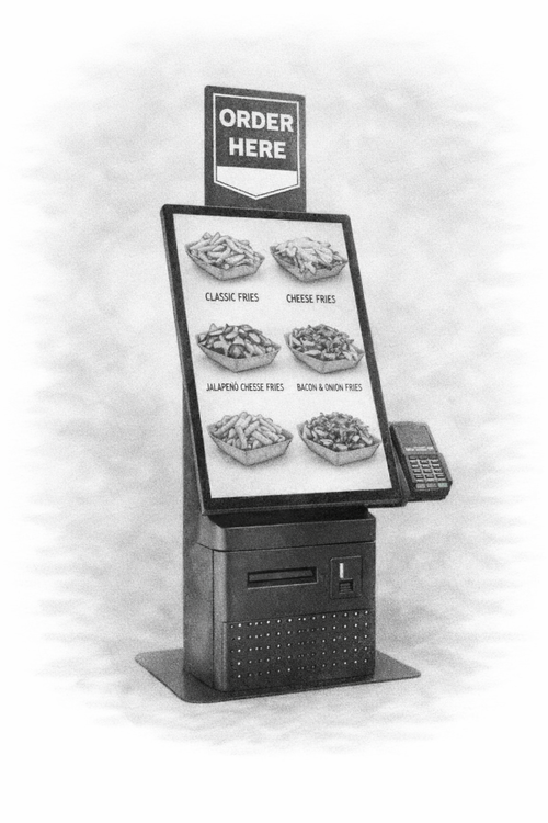 Das Terminal stellt keine Ja/Nein-Frage („Pommes dazu?“), die rational beantwortet würde, sondern eine Auswahlfrage („Welche Pommes?“), die auf impulsive Entscheidungsmuster wirkt.