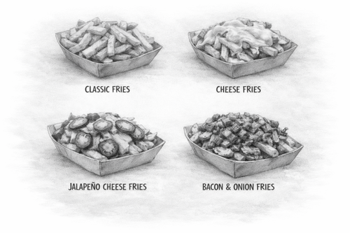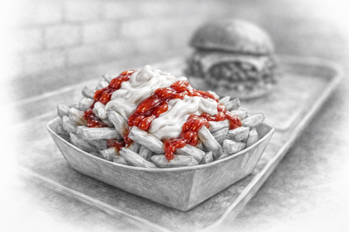 Hohe Marge, niedrige Risiko-, Lager- und Produktionskosten. Deshalb werden diese auch von anderen Burgerketten als Add on verwendet. Five Guys gibt z. B. immer großzügig eine zusätzliche Kelle in die Tüte. McDonald’s und Co. verwenden diese sehr geschickt in Coupons.